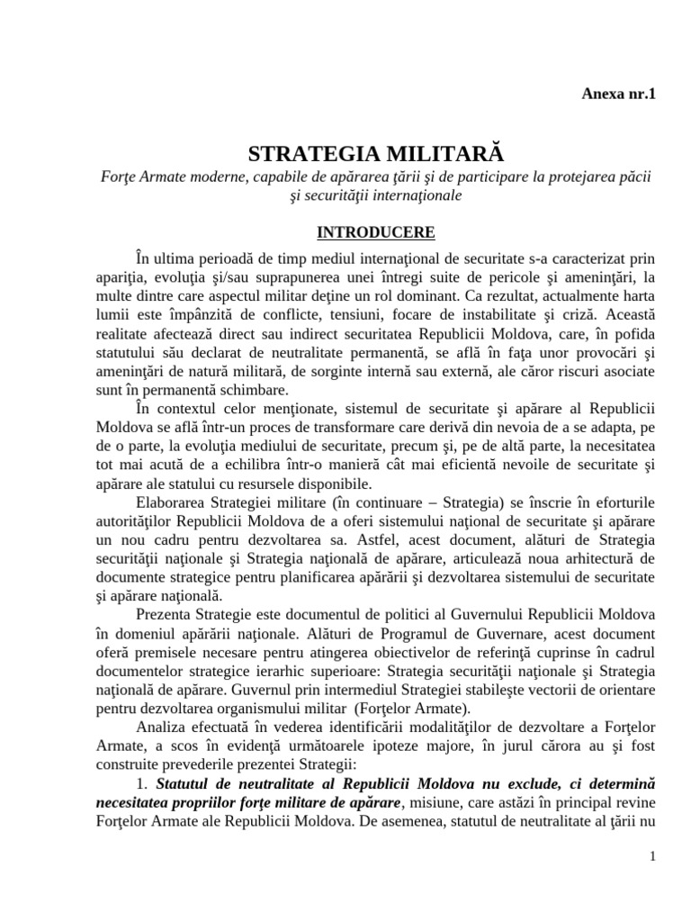 Elaborarea Strategiei militare (în continuare – Strategia) se înscrie în eforturile