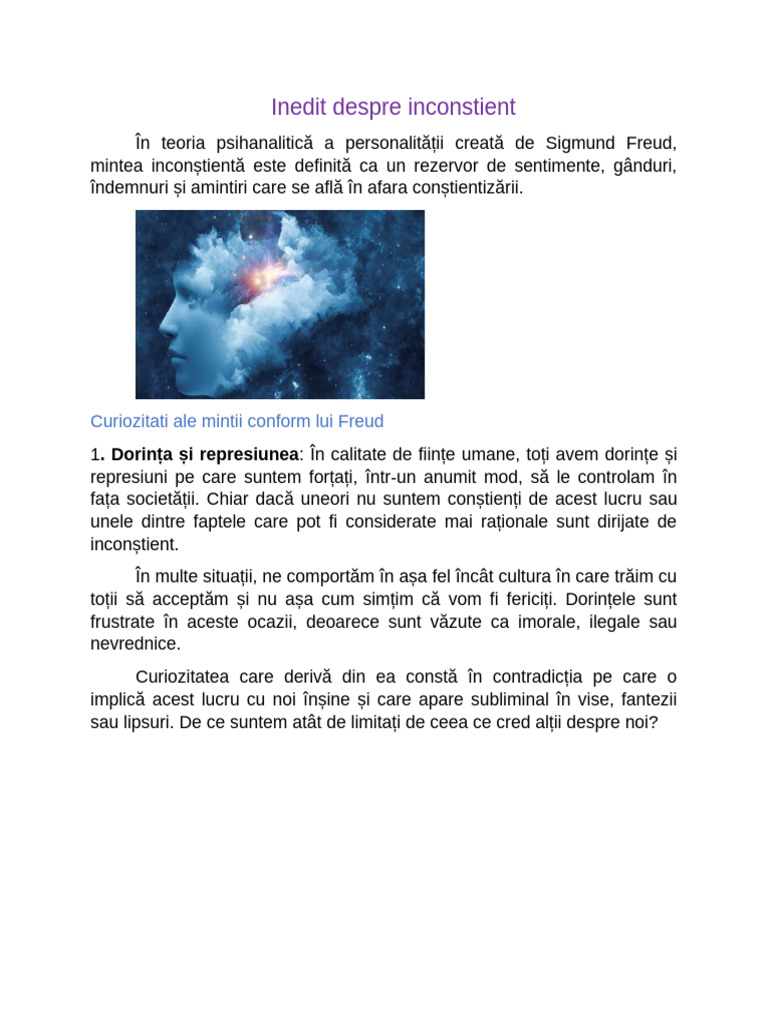Inedit despre inconstient