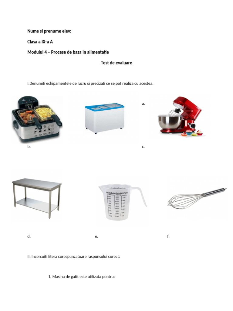 IV. Enumerati 5 ustensile si vase folosite in unitatile de alimentatie publica si scrieti la ce se