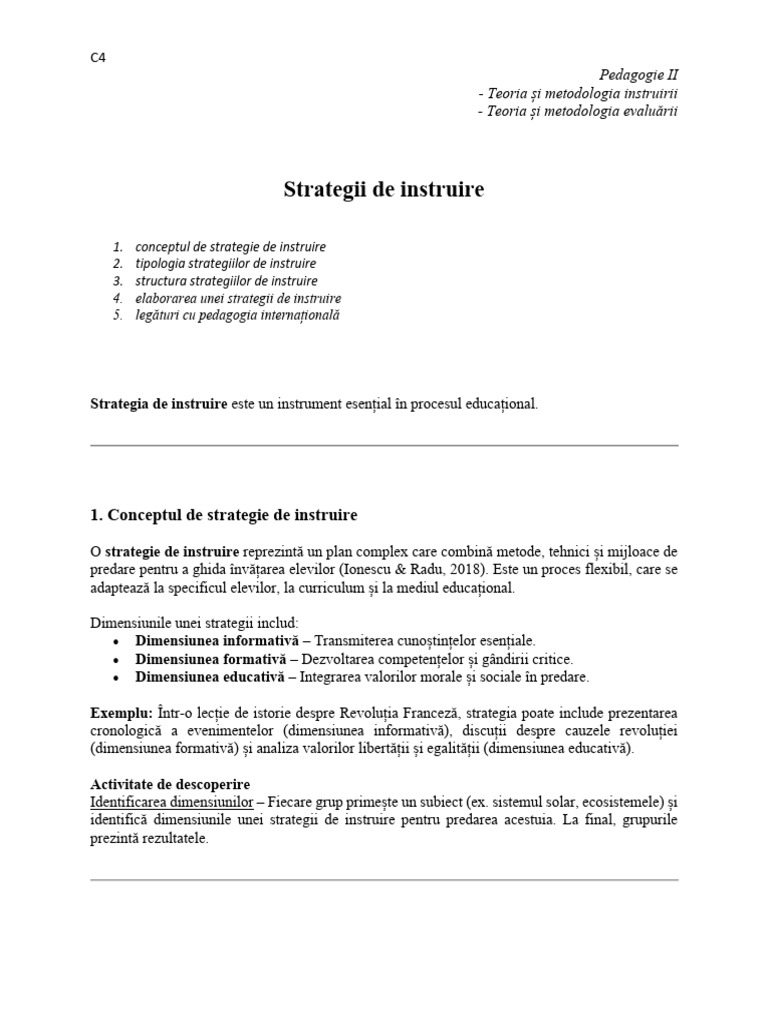 răspunde nevoilor elevilor. În final, strategia de instruire nu este doar un plan, ci un proces dinamic