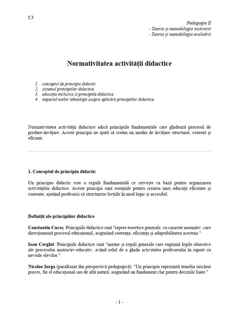 fundamentată a principiilor didactice. Acestea sunt reguli generale care ghidează procesul de