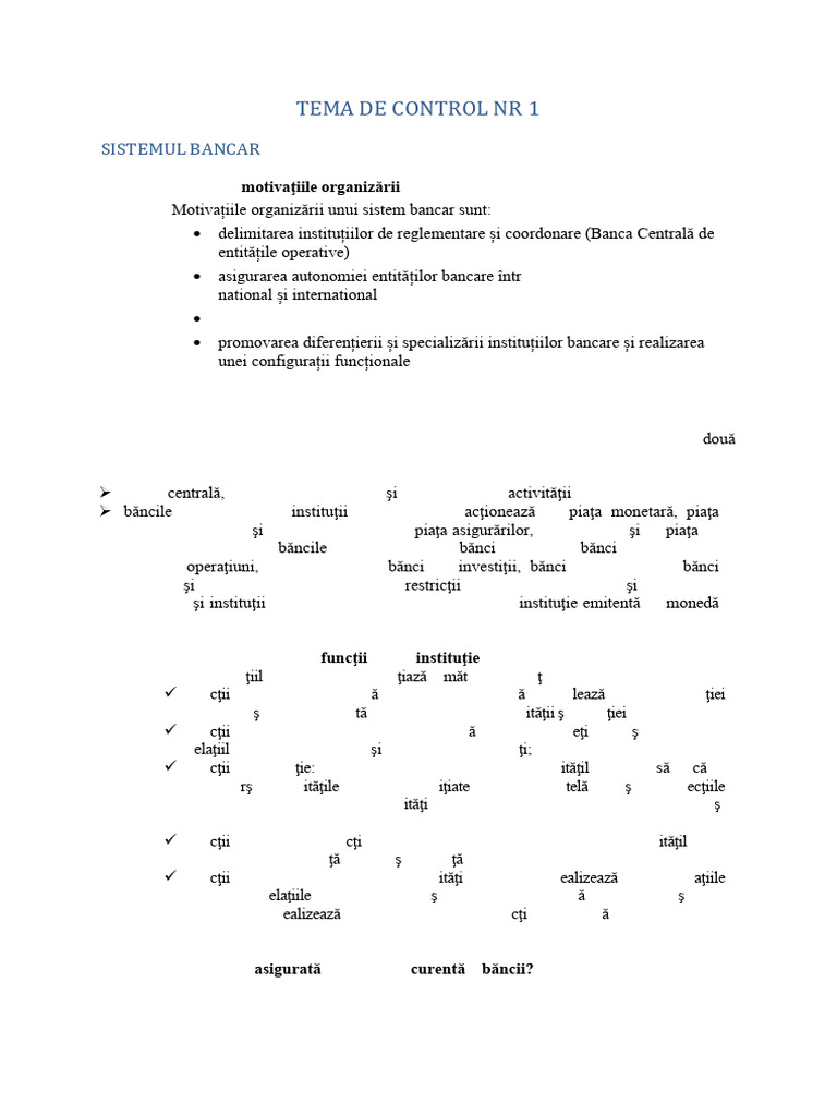 1. Care sunt motivaţiile organizării unui sistem bancar?
