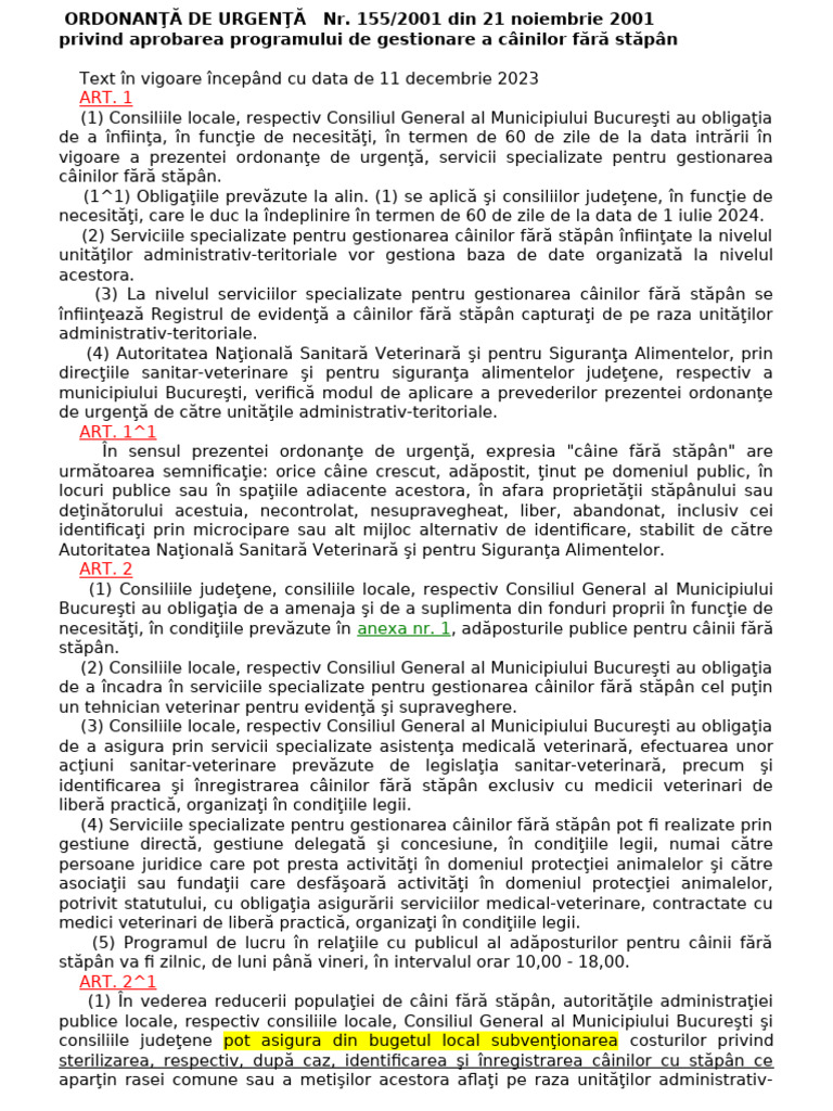 pot fi cazaţi câini fără stăpân care vor fi supuşi acţiunilor sanitar-veterinare conform