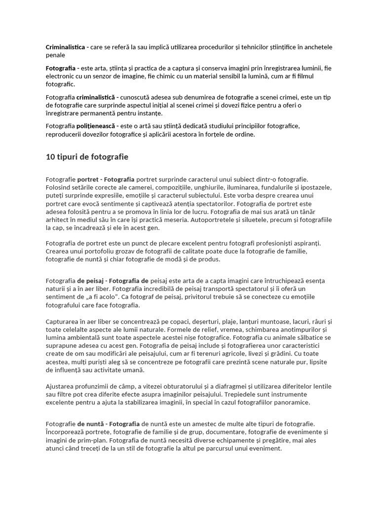 Fotografia polițienească - este o artă sau știință dedicată studiului principiilor fotografice,