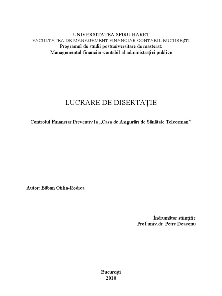 [Link]. 2 Capitolul I Controlul financiar preventiv. Concepte....pag. 3 1.1 Coninutul Controlului financiar preventiv......pag. 3 1.2 Organizarea Controlului financiar propriu...pag. 4 1.3 Exercitarea Controlului financiar propriu....pag. 8 Capitolul II Controlul financiar preventiv propriu asupra proiectelor de operaiuni derulate in Casa de Asigurri de Sntate Teleorman.....pag. 6