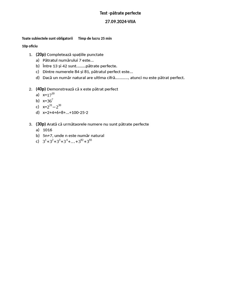 3. (30p) Arată că următaorele numere nu sunt pătrate perfecte