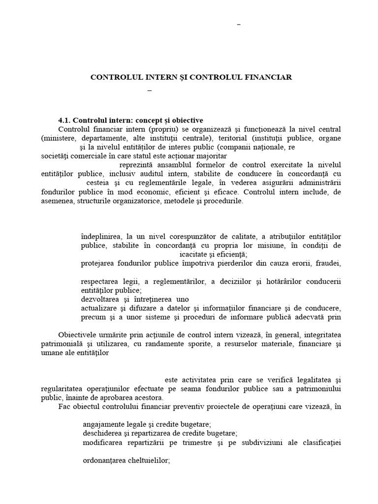 4.1. Controlul intern: concept și obiective
