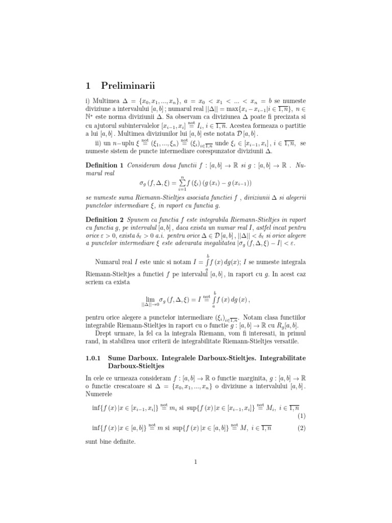 1.0.1 Sume Darboux. Integralele Darboux-Stieltjes. Integrabilitate