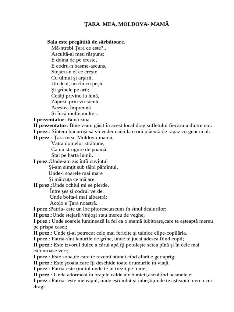 II prez.: Ţara mea, Moldova-mamă,