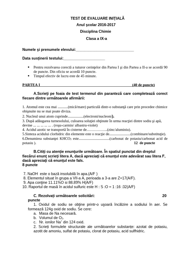 Pentru rezolvarea corectă a tuturor cerinţelor din Partea I şi din Partea a II-a se acordă 90