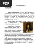 “Absolutismul monarhic este un regim politic în cadrul căruia monarhul concentrază, prin