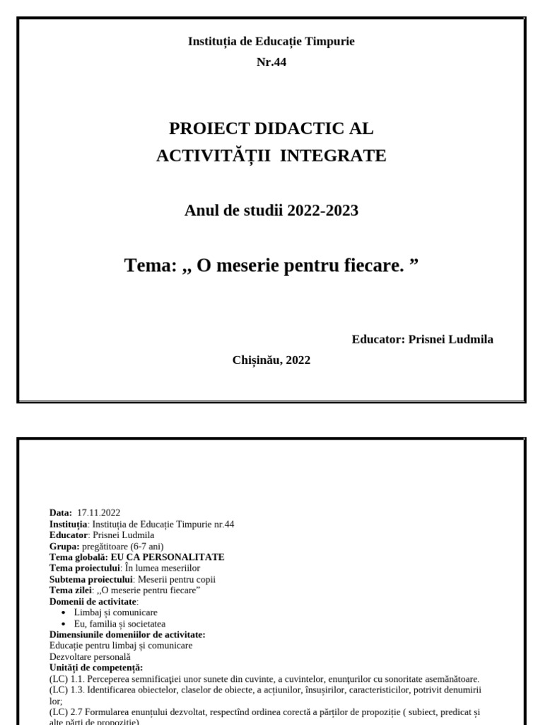 instrumentele după meserie”, tranziții, dezlegarea ghicitorilor, jocul didactic „Cui și ce-i aparține”, dramatizarea.