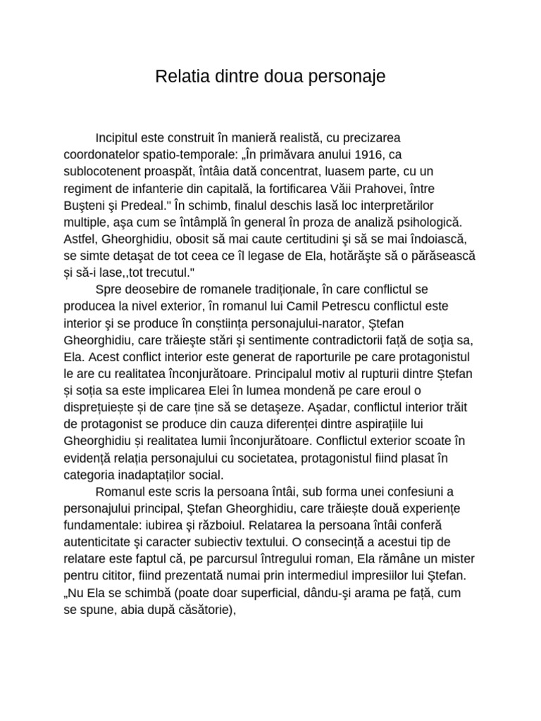 Ela. Acest conflict interior este generat de raporturile pe care protagonistul