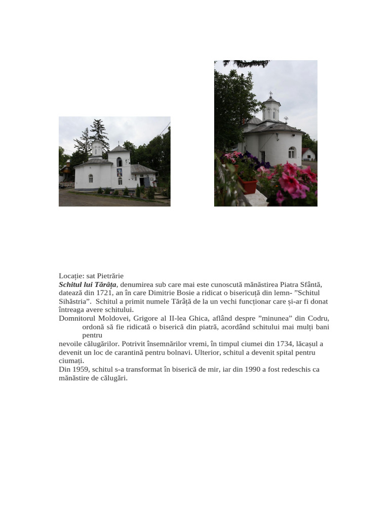 Sihăstria”. Schitul a primit numele Tărâță de la un vechi funcționar care și-ar fi donat