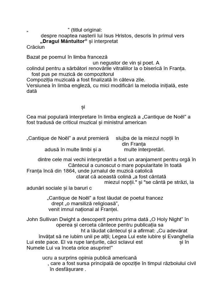 biserici în timpul Liturghiilor de la miezul nopții." și "se cântă pe străzi, la