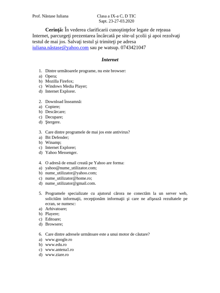 testul de mai jos. Salvaţi testul şi trimiteţi pe adresa