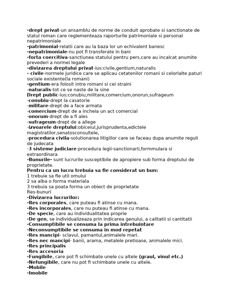 statul roman care reglementeaza raporturile patrimoniale si personal