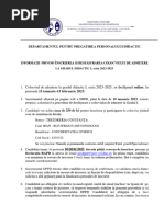 interviului ce va fi afişat la sediul departamentului în corpul Facultaţii de Inginerie Chimică şi