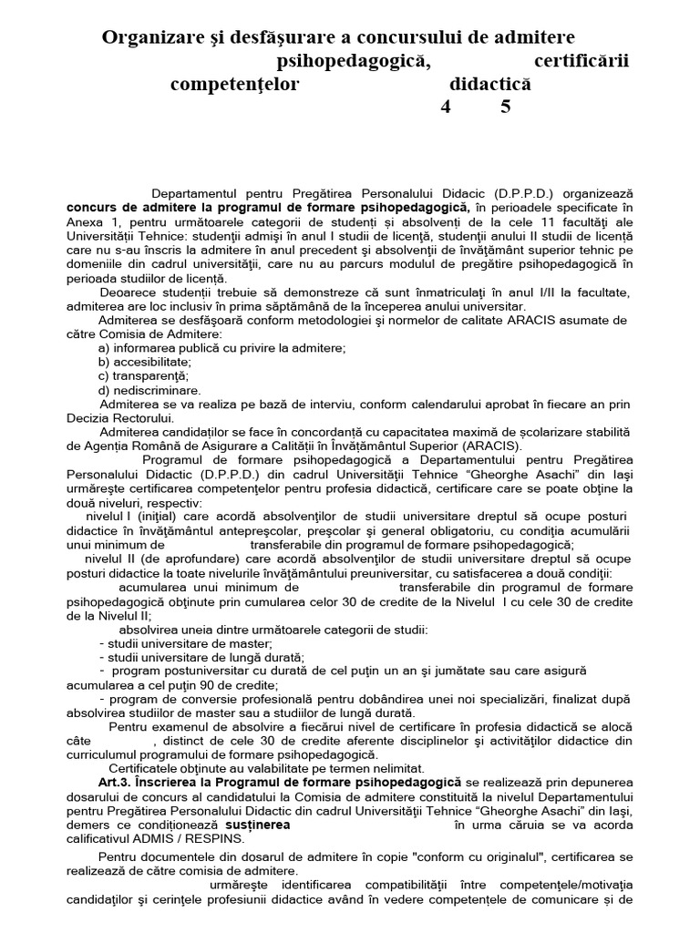 concurs de admitere la programul de formare psihopedagogică, în perioadele specificate în