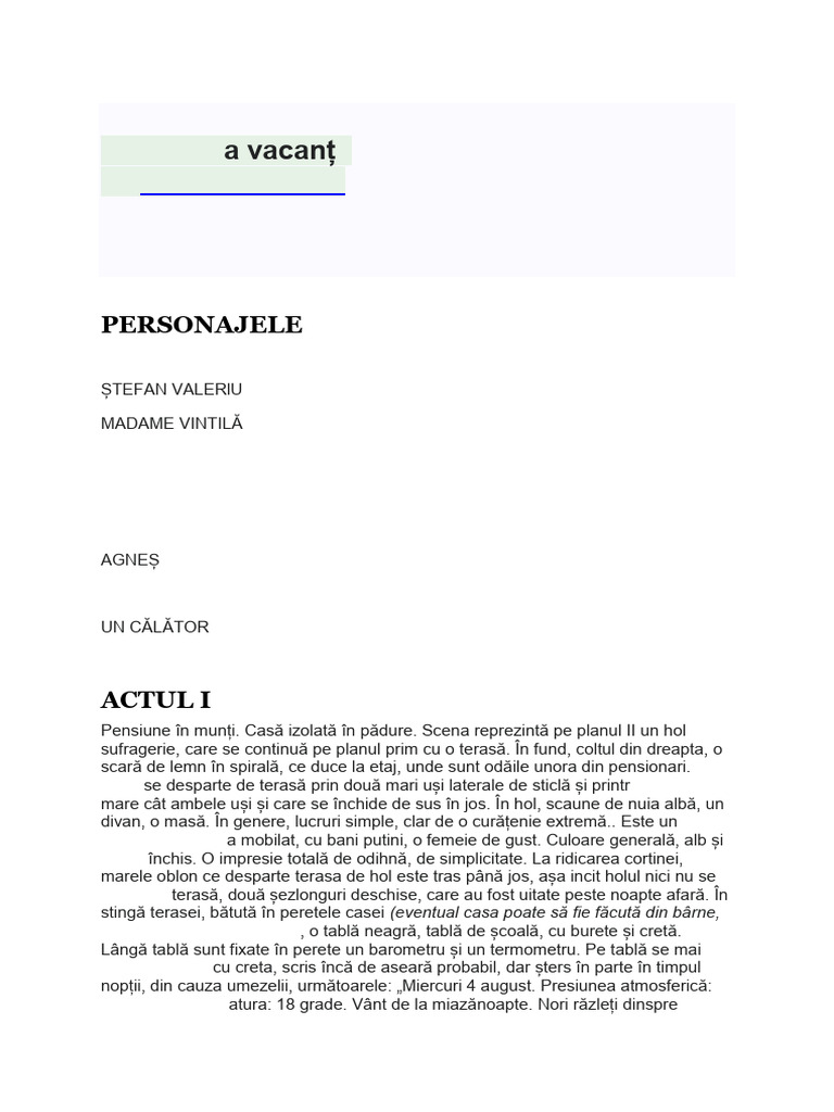 verde-închis. O impresie totală de odihnă, de simplicitate. La ridicarea cortinei,