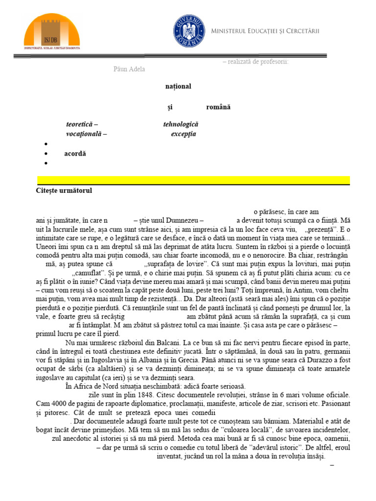 PROPUNERE a TESTULUI 3 - BAC 2025, LLR – realizată de profesorii: