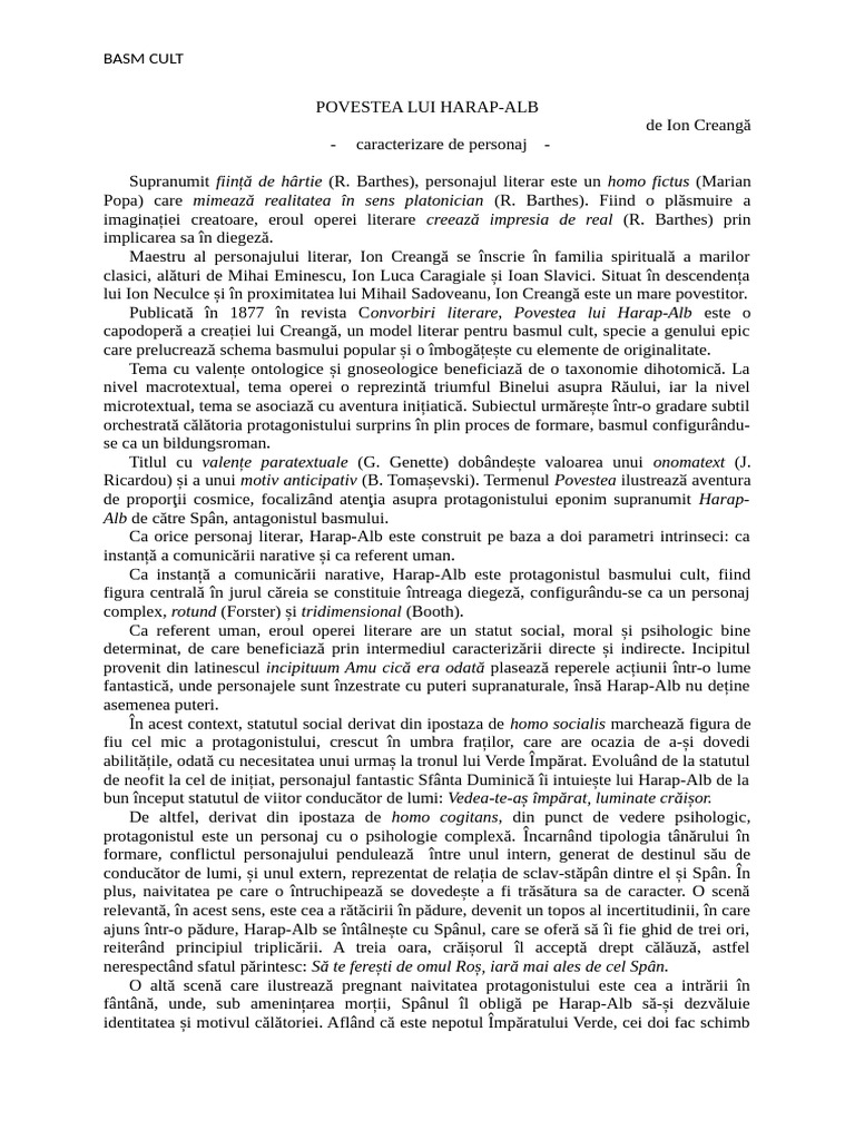 autenticitatea oamenilor reali în basmul cult Povestea lui Harap-Alb de Ion Creangă.