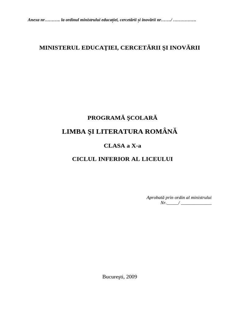 Limba şi literatura română – clasa a X-a, ciclul inferior al liceului 3