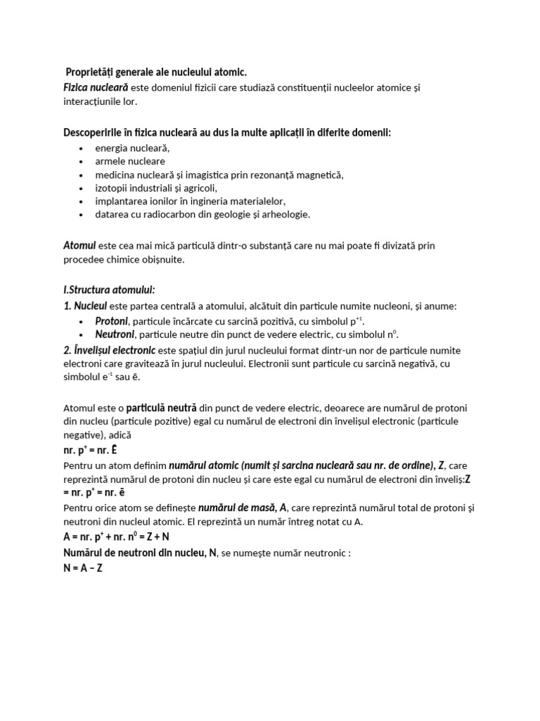 1. Nucleul este partea centrală a atomului, alcătuit din particule numite nucleoni, și anume: