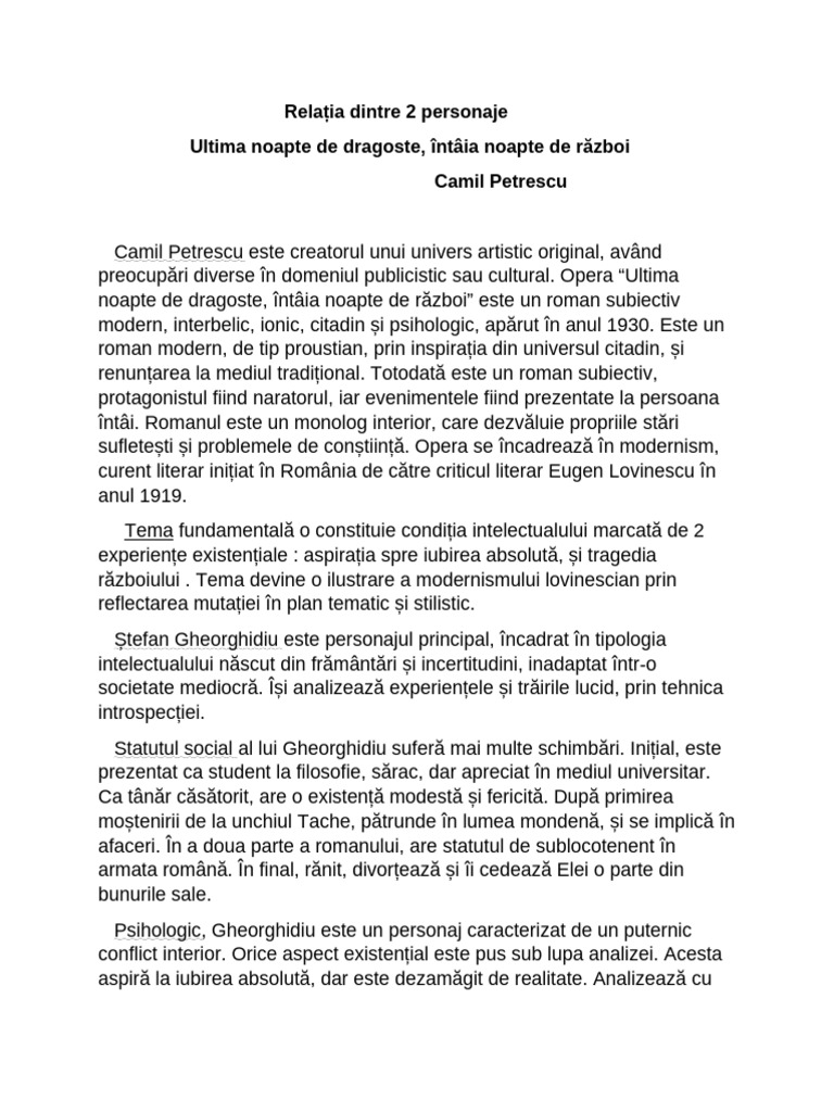 noapte de dragoste, întâia noapte de război” este un roman subiectiv