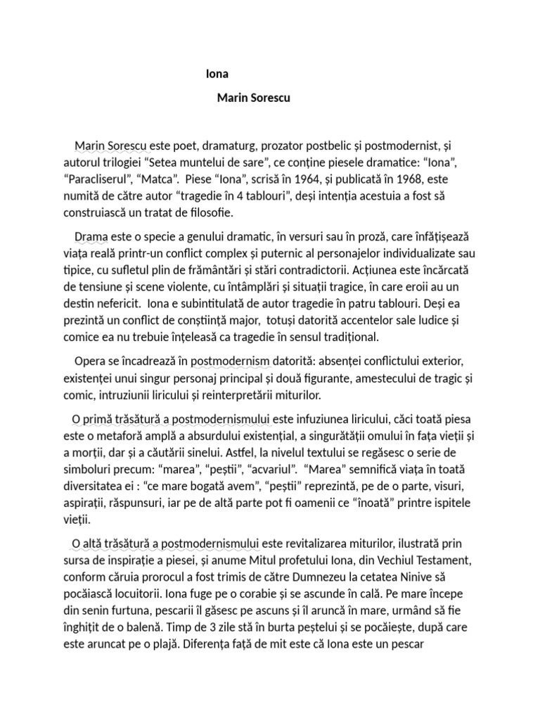 În concluzie, drama Iona aparține teatrului modern, Marin Sorescu renunțând la