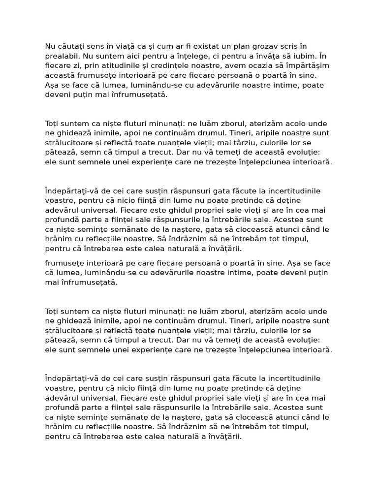 Toți suntem ca niște fluturi minunați: ne luăm zborul, aterizăm acolo unde