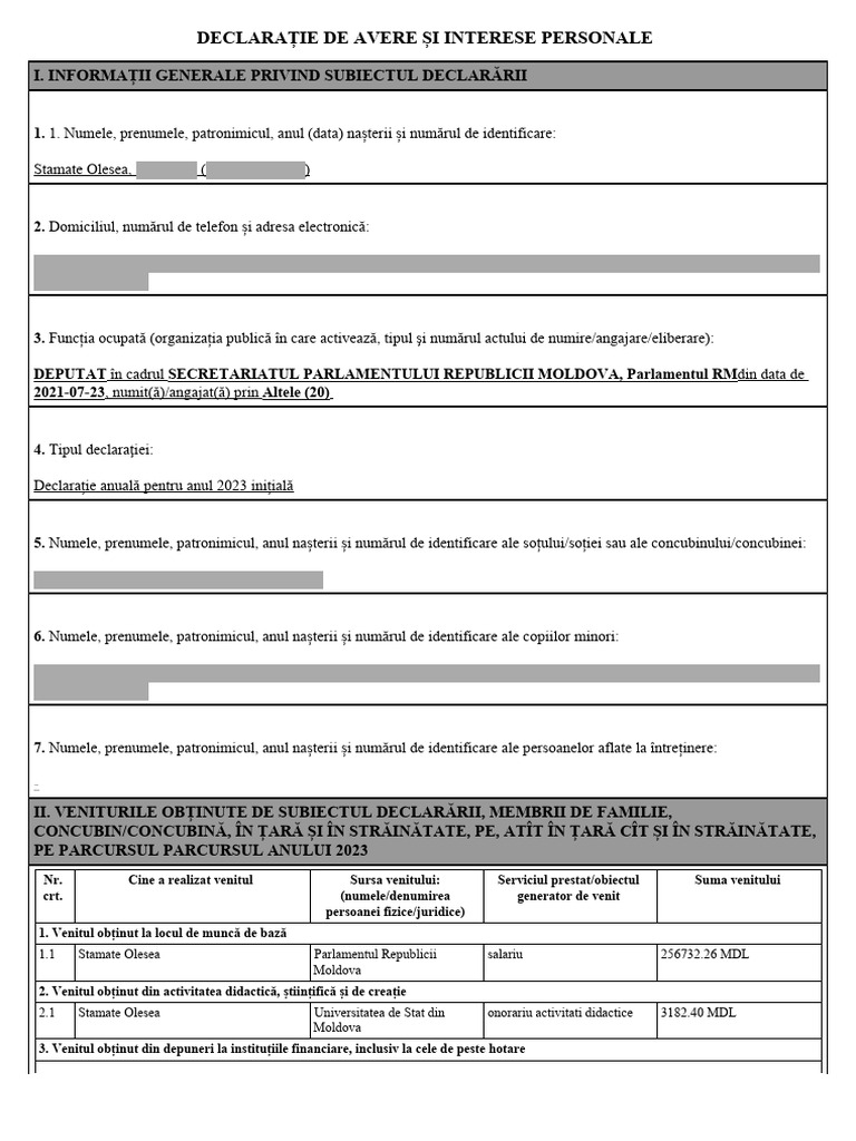 1.1 Stamate Olesea Parlamentul Republicii salariu 256732.26 MDL