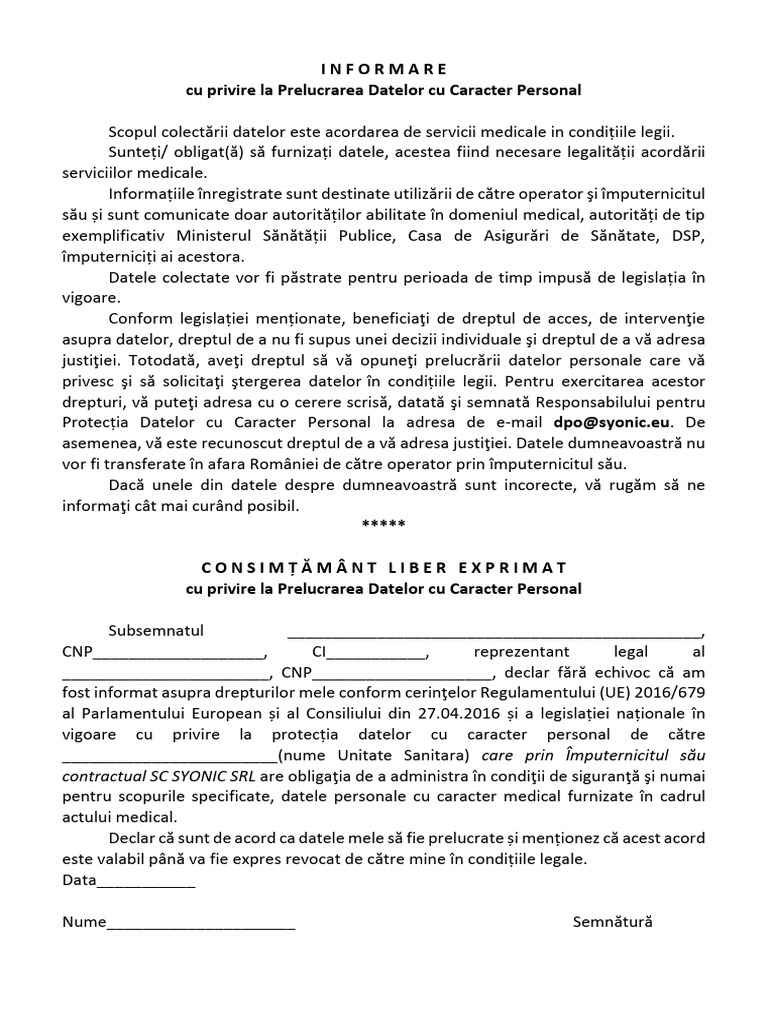 CONSIMȚĂMÂNT LIBER EXPRIMAT