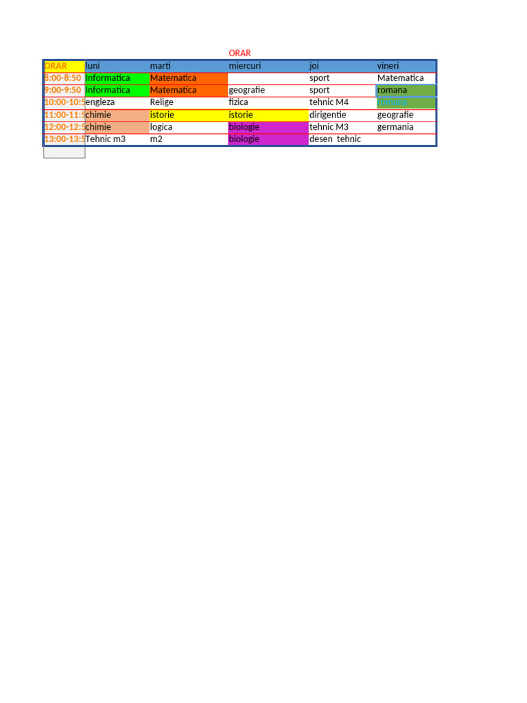 9:00-9:50 Informatica Matematica geografie sport romana