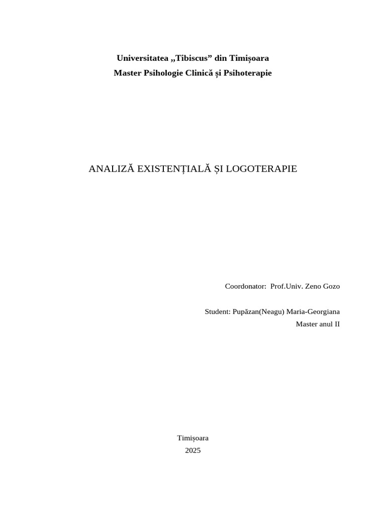 ANALIZĂ EXISTENȚIALĂ ȘI LOGOTERAPIE