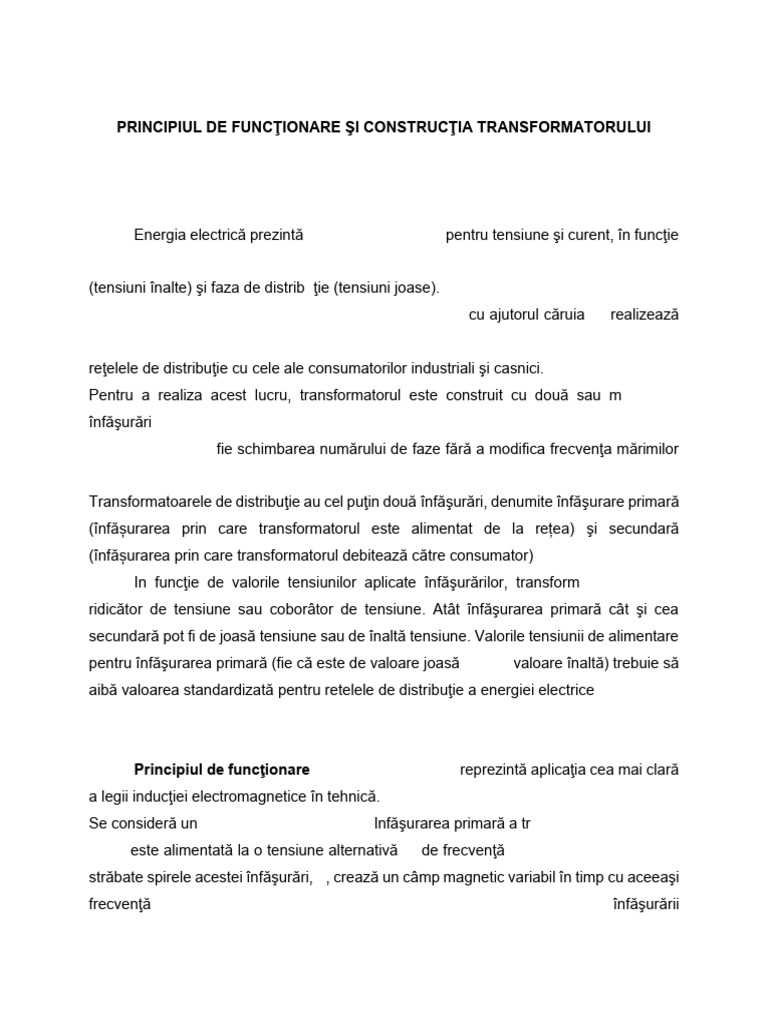 PRINCIPIUL DE FUNCŢIONARE ŞI CONSTRUCŢIA TRANSFORMATORULUI