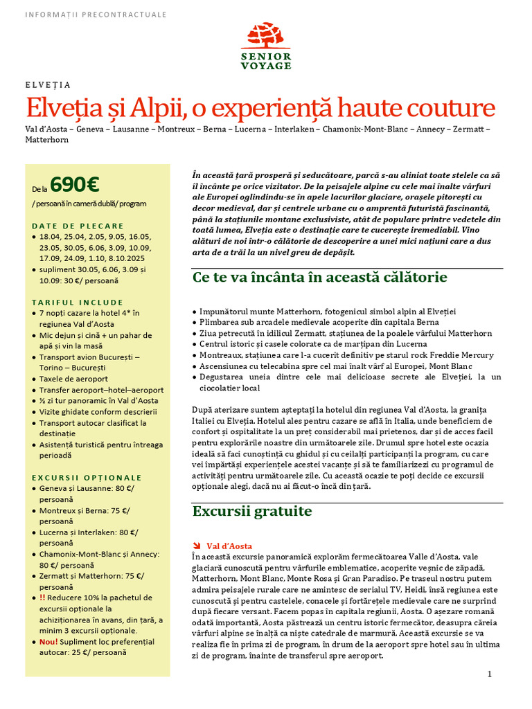 online, în agenție sau la ghid (la emblematice ale Elveției.
