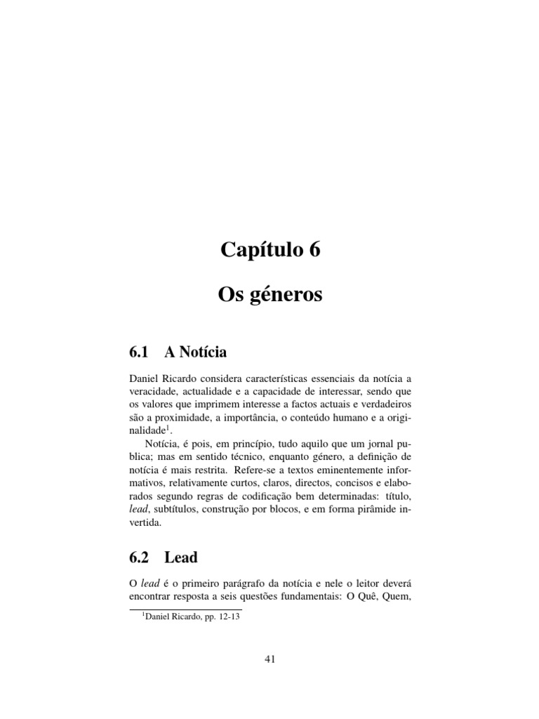 Arajo, Domingos Silva, 1988, Vamos falar de Jornalismo, DirecoGeral da Comunicao Social, Lisboa, p. 66 e ss.
