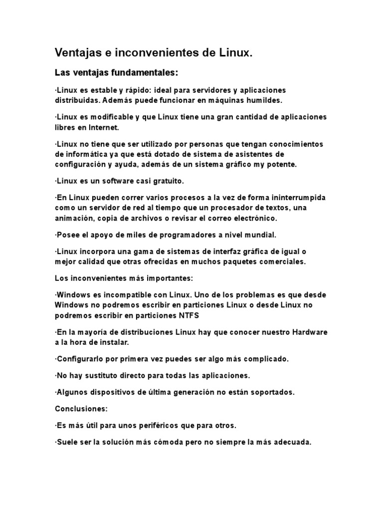 Ventajas e inconvenientes de Linux.
