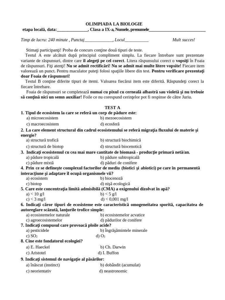 Stimaţi participanţi! Proba de concurs conţine două tipuri de teste.