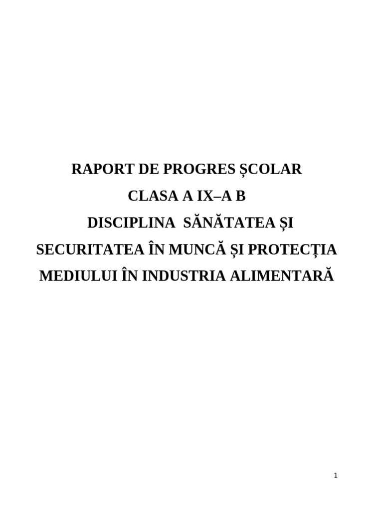 RAPORT DE PROGRES ȘCOLAR