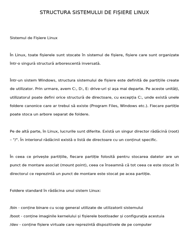 STRUCTURA SISTEMULUI DE FIȘIERE LINUX