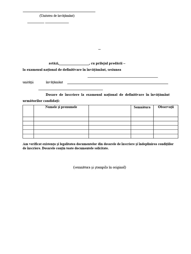 Încheiat astăzi, , cu prilejul predării – primirii dosarelor de înscriere