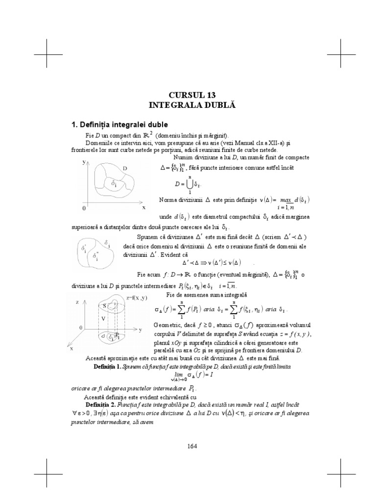 Fie D un compact din R 2 (domeniu nchis i mrginit). Domeniile ce intervin aici, vom presupune c au arie (vezi Manual cls.a XII-a) i frontierele lor sunt curbe netede pe poriuni, adic reuniuni finite de curbe netede. Numim diviziune a lui D, un numr finit de compacte