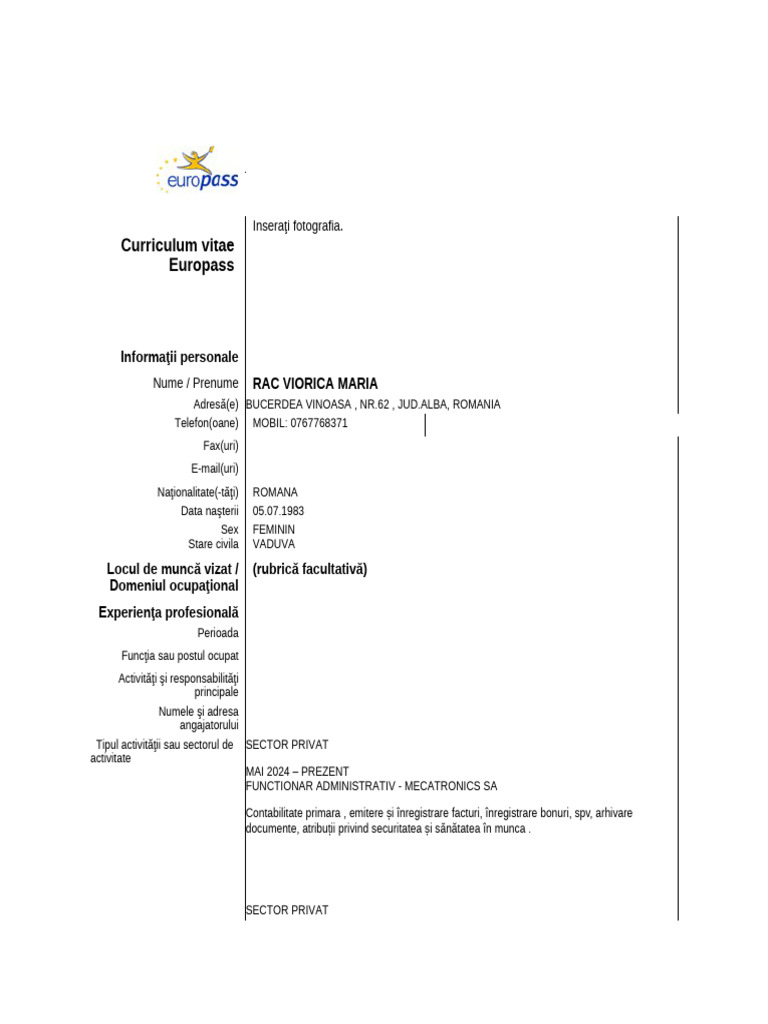 Nume / Prenume RAC VIORICA MARIA