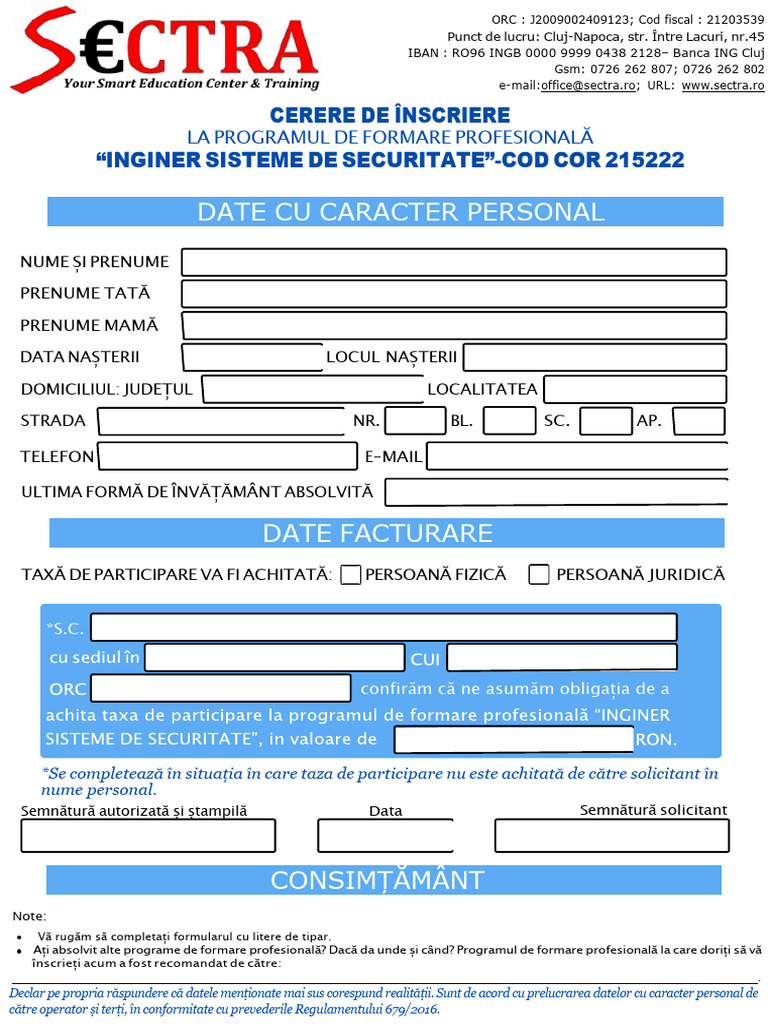Vă informăm că SC SECTRA SRL, în vederea desfăşurării activităţilor comerciale în domeniul educaţiei, prelucrează date cu caracter