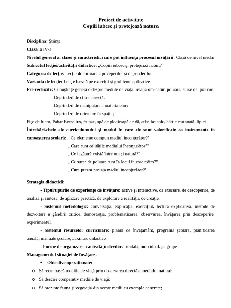 Proiect de activitate