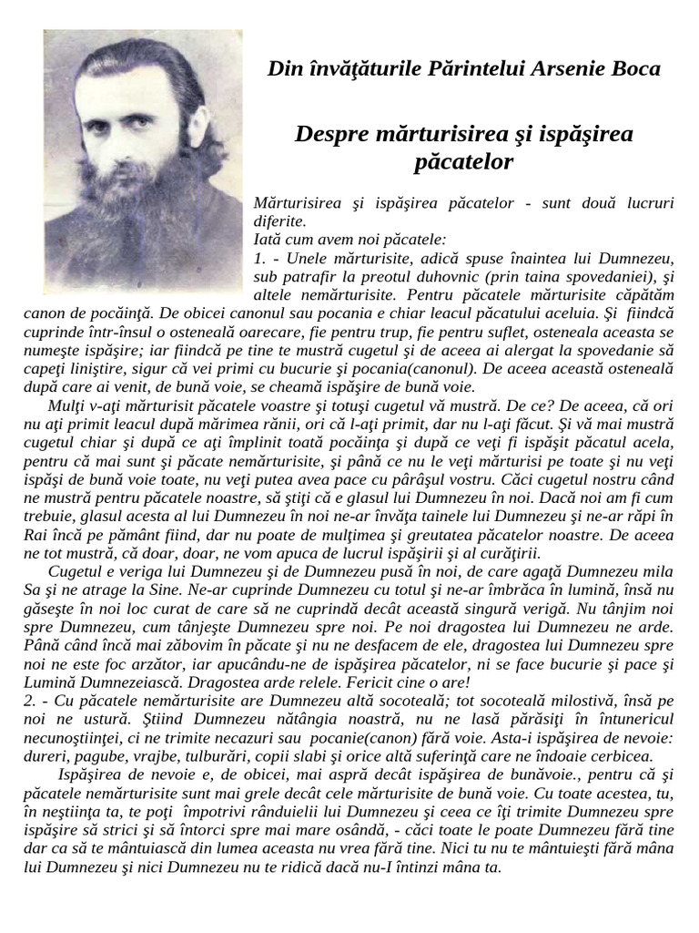 În una din lucrările Părintelui Arsenie Boca, este consemnat lucrul acesta: ''În zilele acestea