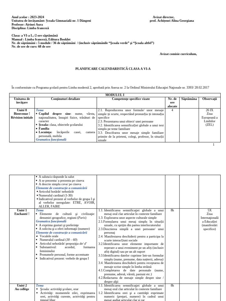 În conformitate cu Programa şcolară pentru Limba modernă 2, aprobată prin Anexa nr. 2 la Ordinul Ministrului Educaţiei Naţionale nr. 3393/ 28.02.2017