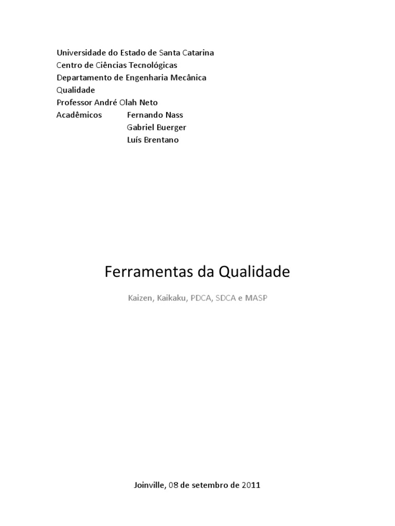 Universidade do Estado de Santa Catarina Centro de Ciências Tecnológicas Departamento de Engenharia Mecânica Qualidade Professor André Olah Neto